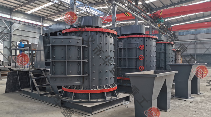 物料由機器上部垂直落入高速旋轉的葉輪內,在高速離心力的作用下,與另一部分以傘狀形式分流在葉輪四周的物料產(chǎn)生高速撞擊與粉碎,物料在互相撞擊后,又會在葉輪和機殼之間以物料形成渦流多次的互相撞擊、摩擦而粉碎,從下部直通排出,形成閉路多次循環(huán),由篩分設備控制達到所要求的成品粒度。
